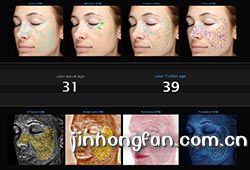 VISIA面部圖像分析儀可以得到如下的八幅面部圖像。其中標準白光四幅,可定量分析面部 的斑點,毛孔,皺紋和平滑度。UV光圖像二幅,可以定量分析面部下層的紫斑和卟啉。交叉 偏振光圖像兩幅,可以定量分析面部皮膚下層的紅區(qū)和褐色斑狀況。